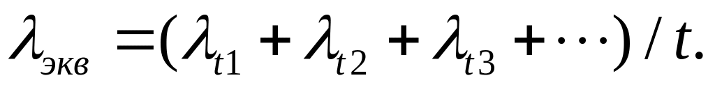 Если в течение времени работы аппаратуры элемент имеет непостоянную интенсивность отказов, но существуют четко выраженные временные интервалы, в течение которых интенсивность отказов элемента в основном постоянна, то для расчета надежности используется так называемая эквивалентная интенсивность отказов элемента. Допустим, что интенсивность отказов элемента за период времени t1 равна λ1, за период t2 равна λ2 и т. д. Тогда интенсивность отказов такого элемента за период времени t = t1+t2+t3 будет