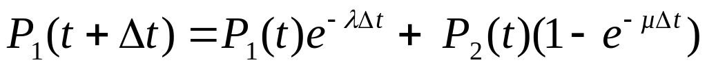 Так как е-λΔt≈1- λΔt, е-µΔt≈ µΔt, то