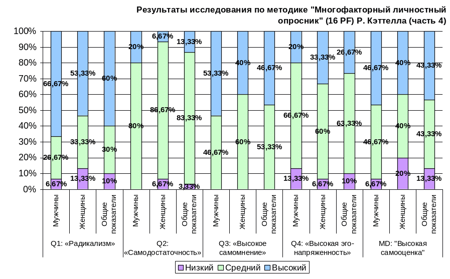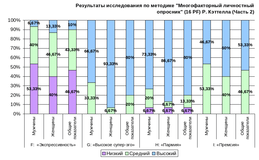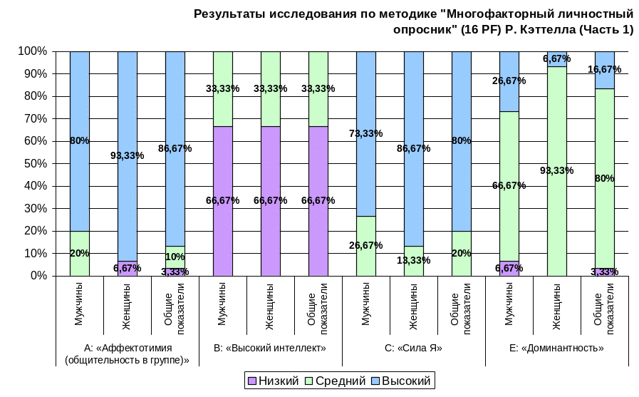 - •Результаты по методике «Многофакторный личностный опросник (16 pf)» р. Кэттелла (Часть 1)