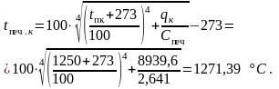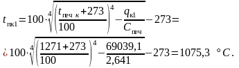 Температура продуктів горіння за рекуператором: