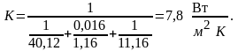 визначаємо коефіцієнт теплопередачі: