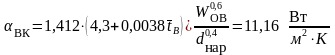 Коефіцієнт тепловіддачі конвекцією на повітряній стороні розраховуємо по формулі: