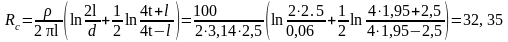 Опір розтіканню струму для одного вертикального стрижневого заземлення визначається за формулою: