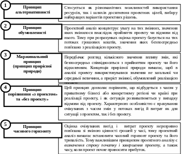 Методологія проектного аналізу спирається на систему принципів, до якої входить: