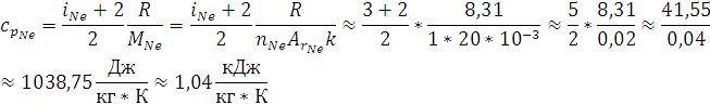 Вычислить удельные теплоёмкости неона и водорода при постоянных cV и давлении cp, принимая эти газы за идеальные.
