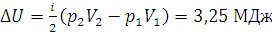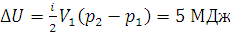 Кислород занимает объём V1 = 1 м3 и находится под давлением p1 = 200 кПа. Газ нагрели сначала при постоянном давлении до объёма V2 = 3 м3, а затем при постоянном объёме до давления p2 = 500 кПа. Построить график процесса и найти: а) изменение ΔU внутренней энергии газа; б) совершённую им работу A; в) количество теплоты Q, переданное газу.