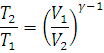 В цилиндре под поршнем находится водород массой m = 0,02 кг при температуре T1 = 300 К. Водород начал расширяться адиабатно, увеличив свой объём в пять раз, а затем был сжат изотермически, причём объём газа уменьшился в пять раз. Найти температуру T2 в конце адиабатного расширения и работу A, совершённую газом. Изобразить процесс графически.