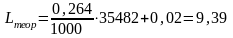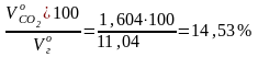 = 0,21·(α – 1)· Lтеор = 0,21 (1,2 – 1) · 9,39 = 0,384 м3/м3;