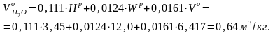 = 0,0889·(64,34 + 0,375·0,38) + 0,265·3,45 – 0,0333·6,9 = 6,417 м3/кг.