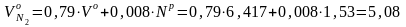 Vг = + 1,0161·(α – 1)·Vо = 3,31 + 1,0161·(1,20 – 1,0)·2,68 = 3,85 м3/кг.