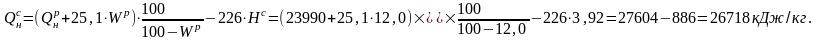 Исходные данные: Нр = 3,45%; Нг = 4,5%; Wр = 12,0%, Ар = 11,4%. = 23 990 кДж/кг.
