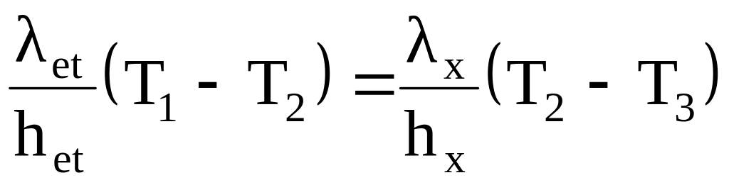 В підрозділі 2.1 було показано, що температура вздовж шару лінійно змінюється. В стаціонарному випадку тепловий потік через дві пластини є незмінним. Це дає змогу записати рівність: