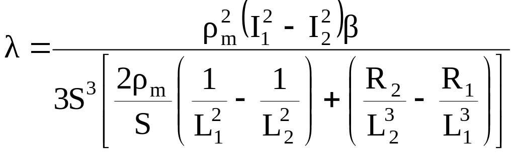 де R1 і R2 – відповідно опори для першого та другого зразків довжиною 2L1 і 2L2. Температура середин цих зразків однакові і дорівнюють Тm. В результаті маємо для коефіцієнта теплопровідності розрахункову формулу: