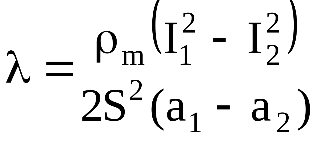 Один з шляхів вирішення цієї задачі складається у наступному. Нехай існує два зразки однакового діаметру та хімічного змісту, але з різною довжиною. Припустимо також, що ці зразки нагріваються різним по силі струмом , відповідно I1 та I2, до однакової температури середини стержня Tm. Тоді можна вирішити систему рівнянь (3.7) і отримати формули розрахунків для визначення теплопровідності на зразках кінцевої довжини: