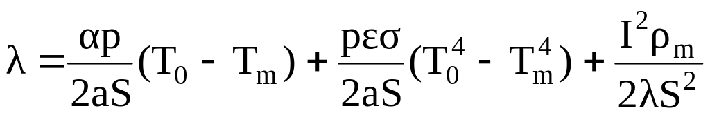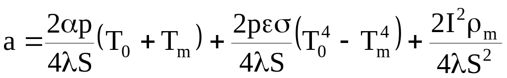 Розглянемо короткий металевий стержень, довжиною 2ℓ, у якого кінці х=0 і q=2ℓ знаходяться при температурі навколишнього середовища Tg. Почнемо нагрівати цей зразок електричним струмом I до якоїсь температури у вакуумі T(x). Тоді нехтуючи температурною залежністю λ, та ε та не враховуючи градієнт температури по радіусу (зразок повинен бути достатньо тоненький), можна отримати наступне рівняння теплового балансу при стаціонарному режимі