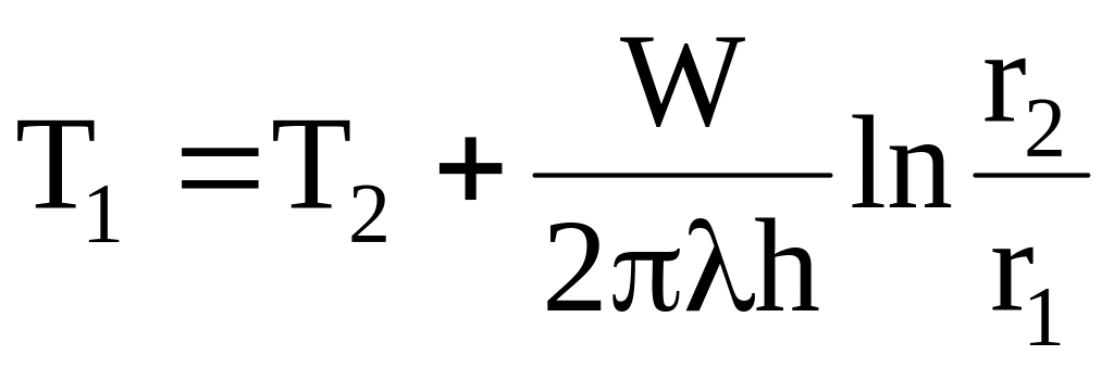 де С – стала інтегрування, яку можна знайти з умови, що при r = r1 T = T1, а при r = r2 Т = Т2, тобто