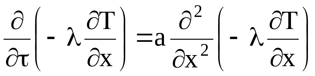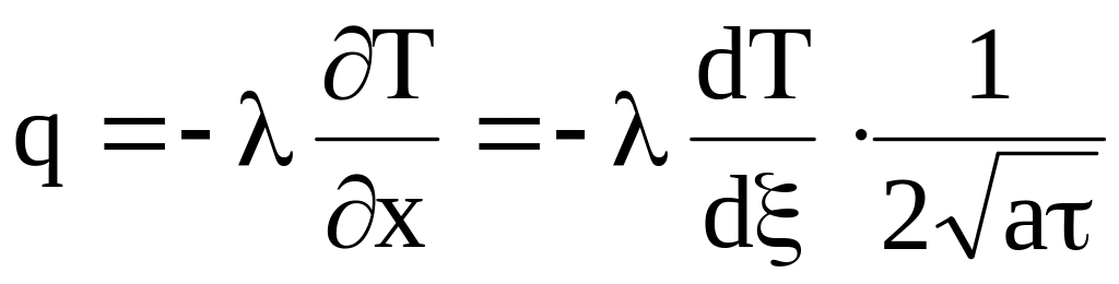 Для розв’язку виявляється зручним перехід від температури до теплового потоку, для чого достатньо продиференціювати диференціальне рівняння теплопровідності по координаті і домножити обидві його частини на –: