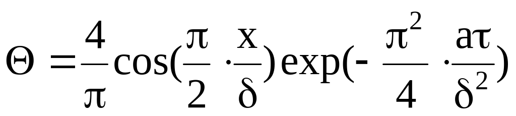 З метою полегшення практичних розрахунків для характерних точок (середина пластини, поверхня) в спеціальних довідкових виданнях містяться графіки функції . З (4.34) також витікає, що при просторова залежність Θ описується функцією косинуса, а часова – експонентою.