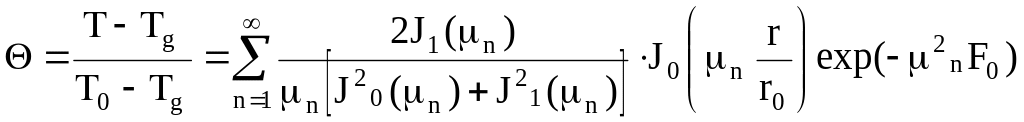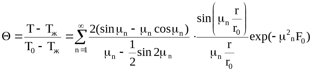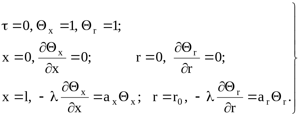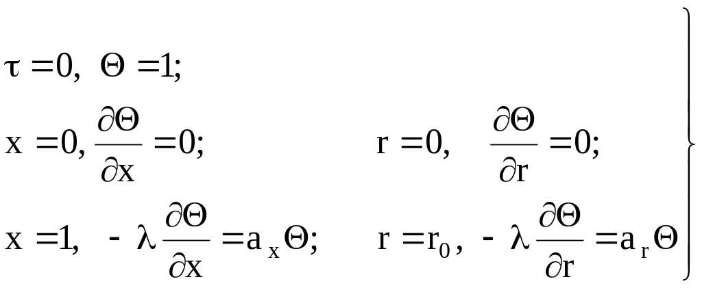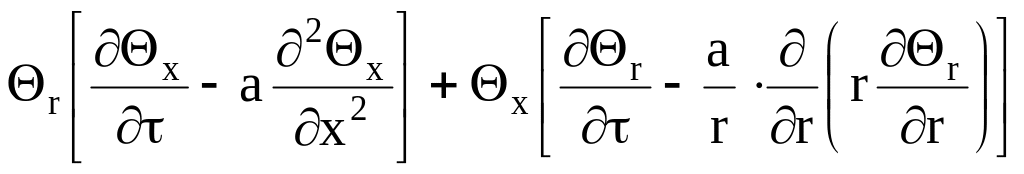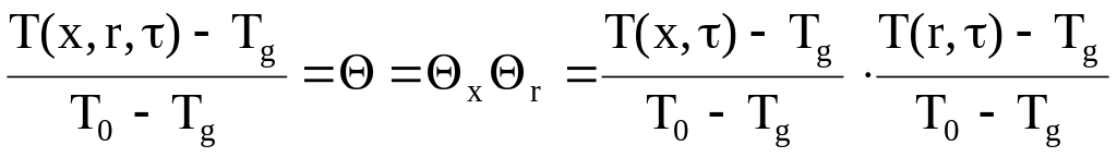 Вирази в квадратних дужках є ні що інше, як диференціальне рівняння теплопровідності для пластини і циліндра, що обертаються в нуль. В результаті (4.49) обертається в тотожність і, отже, є розв’язком поставленої задачі.