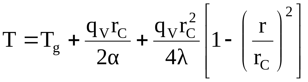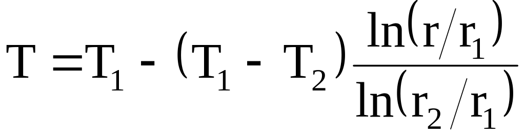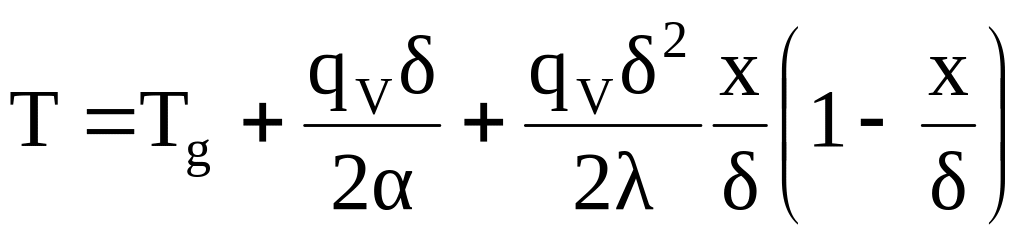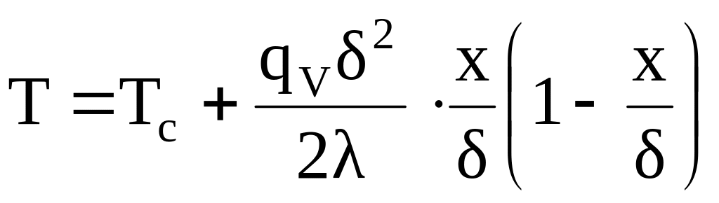 (в загальному випадку температури поверхонь можуть бути різними). Двічі інтегруючи наведене диференційне рівняння і визначаючи постійні інтегрування, отримаємо