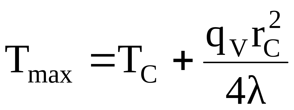 Отриманий вираз для максимальної температури співпадає з виразом, отриманим для пластини, відрізняючись лише величиною числового коефіцієнту, що являється, таким чином, функцією геометрії системи.