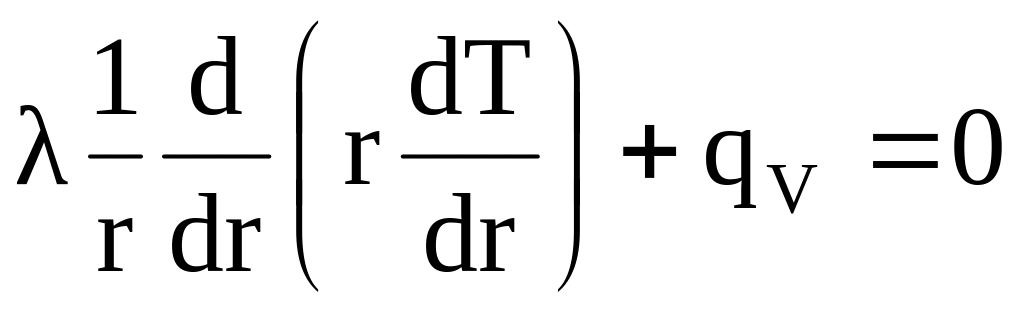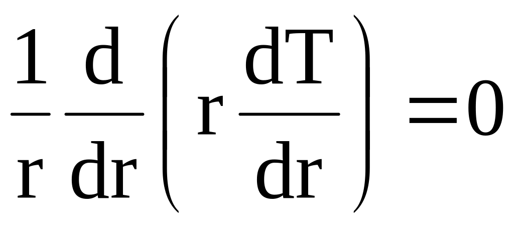 Рівняння, що описує процес теплопровідності в циліндричних координатах, у випадку незалежності коефіцієнта теплопровідності від температури та відсутності внутрішніх джерел тепла, для розглянутої задачі запишеться у вигляді