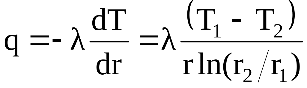 Підкреслимо, що якщо для плоскої стінки при відсутності внутрішніх тепловиділень для всіх ізотермічних поверхонь густина теплового потоку сталий, то для циліндричної стінки по зрозумілим причинам густина теплового потоку спадає зі збільшенням радіусу (оскільки зростає площа тепловідводу). Диференціюючи останній вираз по радіальній координаті, отримаємо