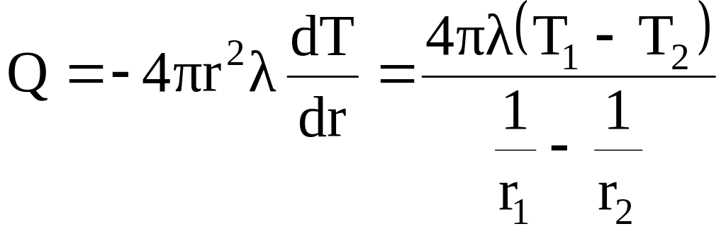 Тепловий потік через сферичну стінку отримаємо шляхом диференціювання: