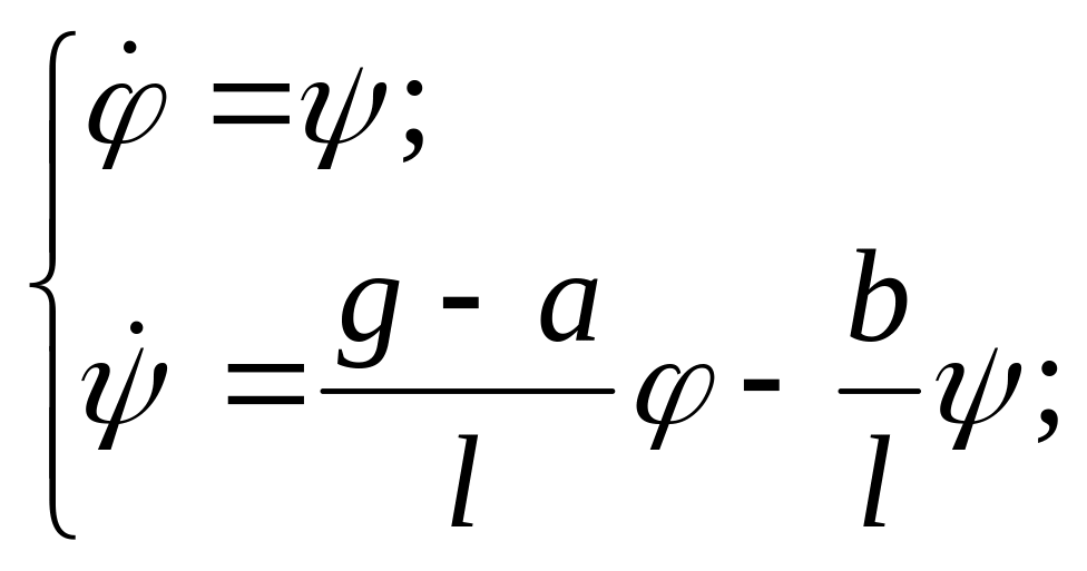 12) Вводим ограничение малых углов, получаем дифференциальное уравнение второго порядка;