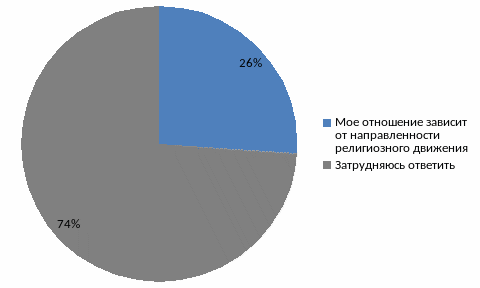 Чтобы определить отношение студентов к новым религиозным движениям, респондентам был также задан вопрос. Ответы распределились следующим образом:
