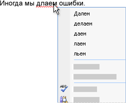 В зависимости от используемой программы пакета Microsoft® Office щелчок правой кнопкой мыши может предоставить и другие возможности, например, добавление слова в пользовательский словарь.