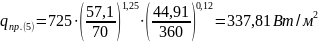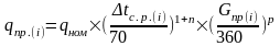5.Вычисляем расчётную плотность теплового потока i-го отопительного прибора: