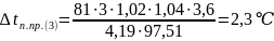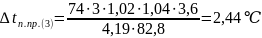 3.Рассчитываем среднюю температуру напора в отопительном приборе с учётом понижения температуры воды в подающей магистрали и стояке: