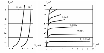 Рисунок 3.5 – Входная и выходная статические характеристики транзистора КТ340А