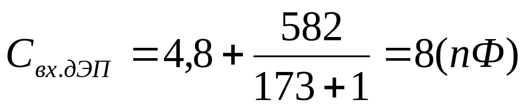 И далее находим параметры ЭП по (3.2.3)-(3.2.6). Величина емкости нагрузки равна входной динамической емкости оконечного каскада (Сн=582 пФ):