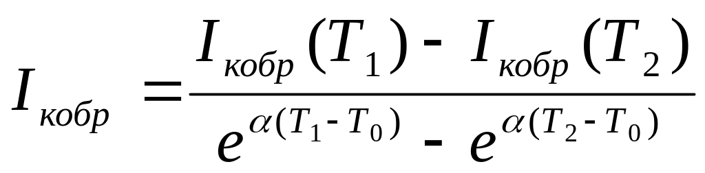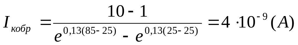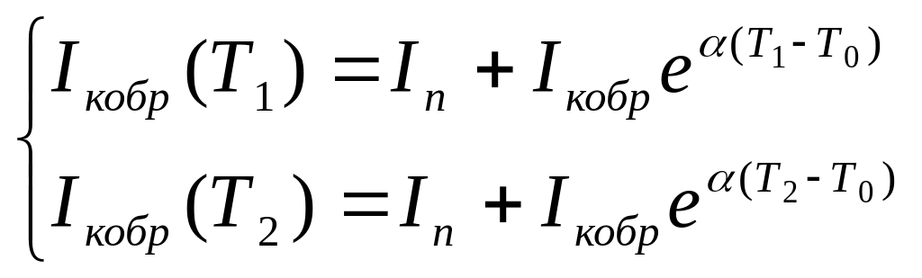 Следует заметить, что значение Iкобр приведенное в справочнике представляет собой сумму пассивной и активной составляющих. А так как пассивная составляющая не зависит от температуры, то она нас и не интересует. Если значение обратного тока в справочнике приводится при двух температурах, то активную составляющую можно найти из системы: