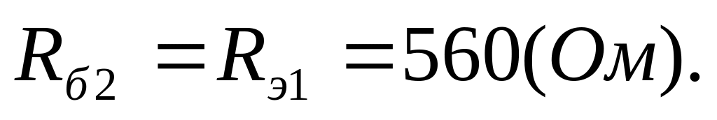 Выберем из ряда номиналов резисторов с допуском 10% ближайшие к полученным значениям: Rэ1=560 Ом, Rб1=2,7 кОм, Rб2=8,2 кОм.