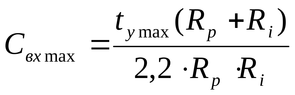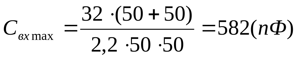 Для оценки максимально возможного значения входной емкости, найдем максимальное значение времени установления, которое может вносить входная цепь: