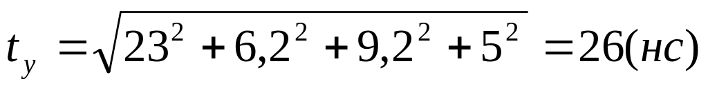 Результирующее время нарастания определяется как корень из суммы квадратов искажений вносимых каждым каскадом (см. пункт 2):