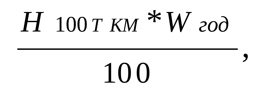 где: H100 т км – норма расхода топлива на 100 ткм, л