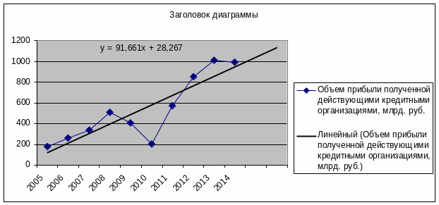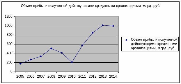 Рис. 2.4 Динамика объем прибыли полученной действующими кредитными организациями в период 2005-2014 года