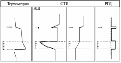 Типовые кривые комплекса методов для решения задачи определения места нарушения герметичности колонны: