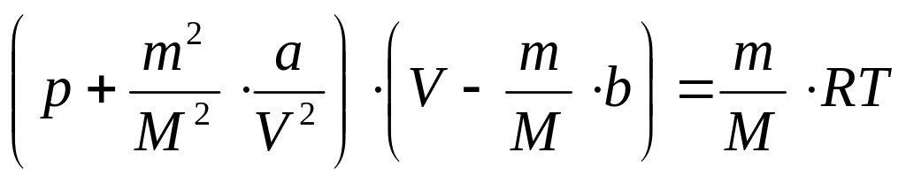 Тогда для произвольного количества реального газа уравнение состояния имеет вид: