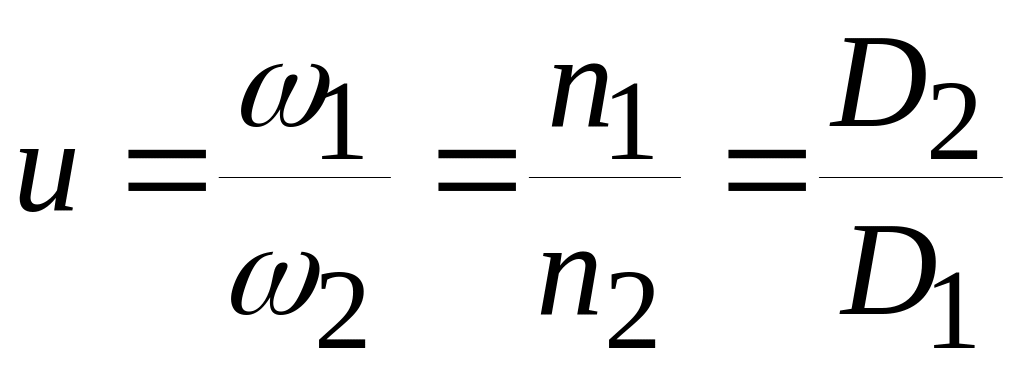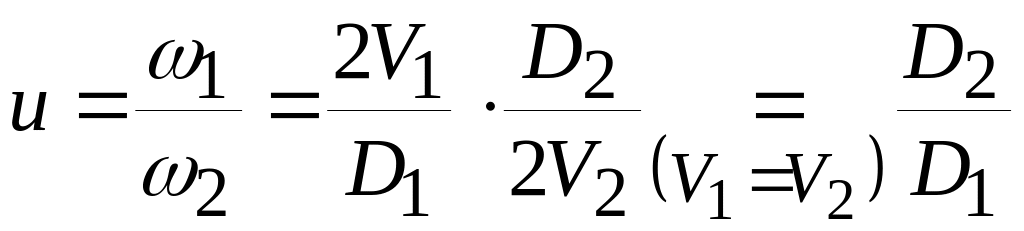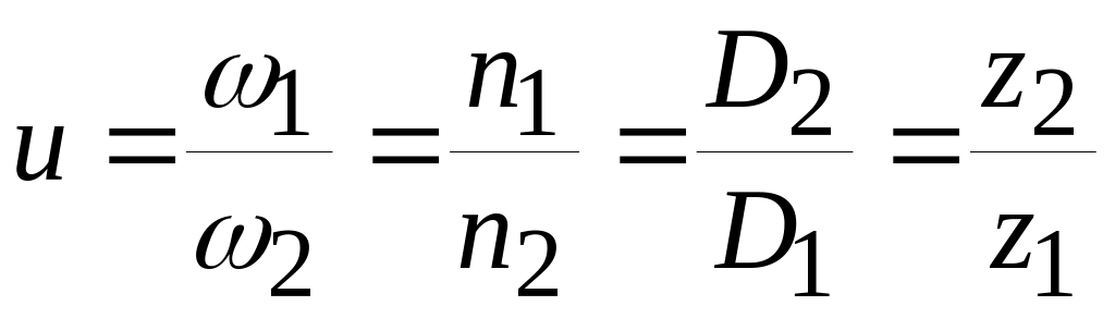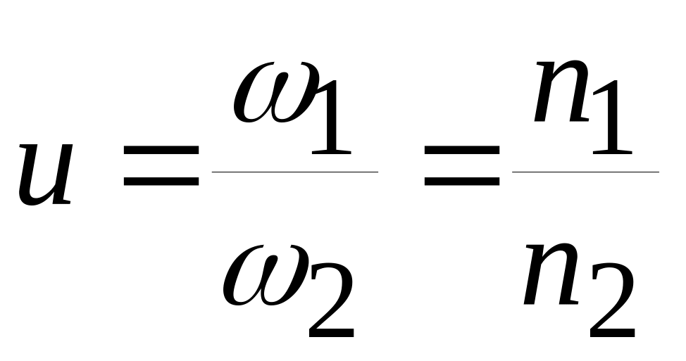 3. Передаточное число – отношение угловых скоростей двух валов – ведущего к ведомому: