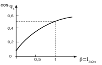 Рис. 4.6 - Зависимость cos 1 трансформатора от коэффициента нагрузки |