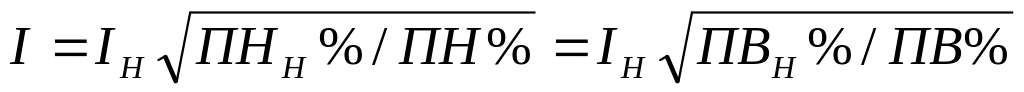 Если величина ПН% (или ПВ%) отличается от номинальной приведенной в паспорте установки, то величину сварочного тока соответствующую другому значению ПН% (или ПВ%), можно найти, пользуясь формулой