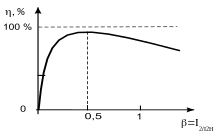 Рис. 4.7 - Зависимость к.п.д. трансформатора от коэффициента нагрузки |