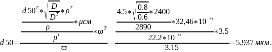 Для учета влияния отклонения рабочих условий от типовых определяют значение параметра d50 по формуле: