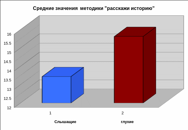 В заключение можно сказать, что с помощью использованной методики «Расскажи историю» можно проанализировать различия между нормативными детьми и детьми, которые испытывают трудности в общении с социумом. Но также есть положительные показатели, которые схожи с показателями нормальных детей и свидетельствуют о том, что эмоциональное положение схоже и нормативными показателями, несмотря на их физиологические недостатки и явные проблемы в получении информации.