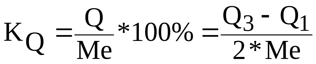 Ці показники обчислюються як відношення абсолютних показників варіації до середньої арифметичної або медіани. Використовуючи в якості абсолютних показників розмах варіації, середнє лінійне, середнє квадратичне та квартильне відхилення, отримаємо відносні показники варіації: